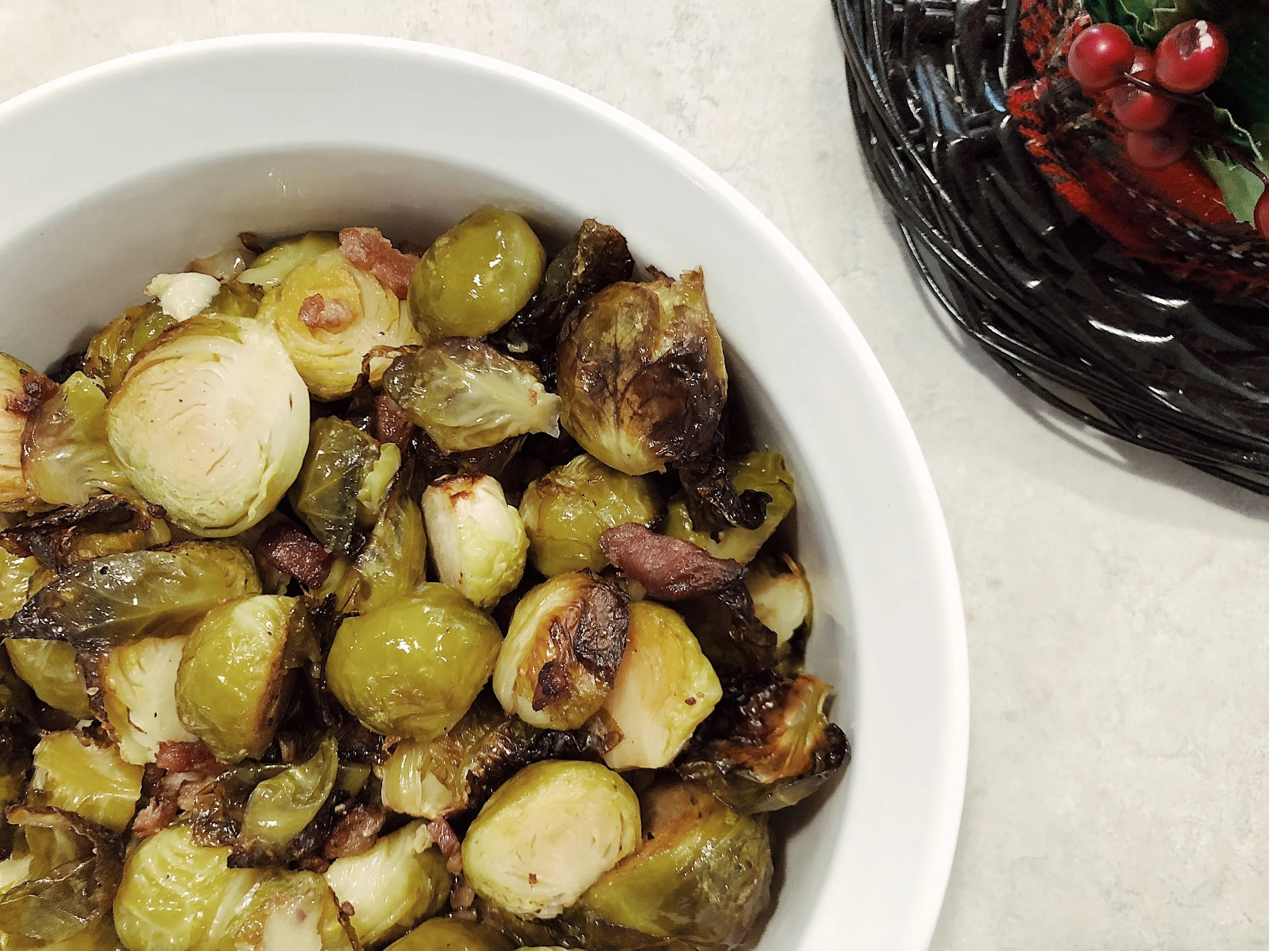 Combine the Brussels sprouts, Bacon, and addition ingredients into a bowl and mix. Transfer your mix to an oven safe pan and cook in the oven at 400 degrees for about 10minutes, flip and continue to cook until crispy.